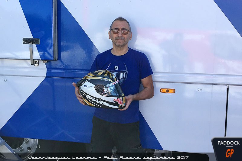 Sur notre photo prise hier au circuit Paul Ricard, là où le casque avait été volé, vous pouvez voir Jean-Jacques Lacroix, fort heureux d’avoir finalement récupéré la semaine dernière un de ses bébés quasi unique…