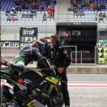Nous voilà reparti, boostés comme jamais, pour cette deuxième journée. Nous avons pu assister aux FP1 motoGP depuis le Box TECH3. L’ambiance y est beaucoup plus studieuse que la veille, chacun concentré sur sa tâche. Quelques réglages sur les motos, dernier briefing aux pilotes et voilà que Pol et Bradley s’élancent pour la première session d’essais libres.