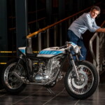 « J’ai choisi de partir sur un petit « SR 400″. Une machine légère dotée un monocylindre et de revenir aux bases de la moto. J’aime faire des projets avec un fil d’Ariane. Cette fois, j’ai décidé de dédier cette machine à Bernard Ansiau dont j’admire le travail. J’ai pas mal travaillé en sport mécanique, et les travailleurs de l’ombre sont partie intégrante de la victoire d’un pilote. Ils sont rarement cités, j’y contribue ici à ma manière »