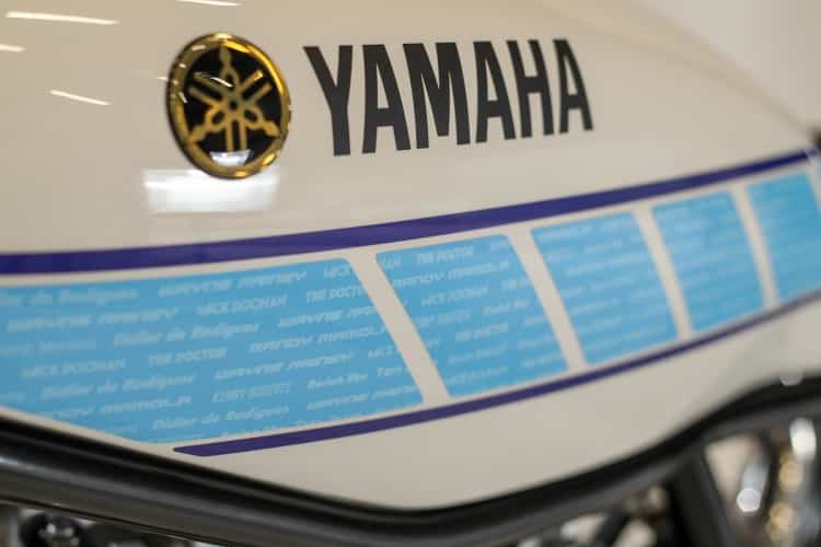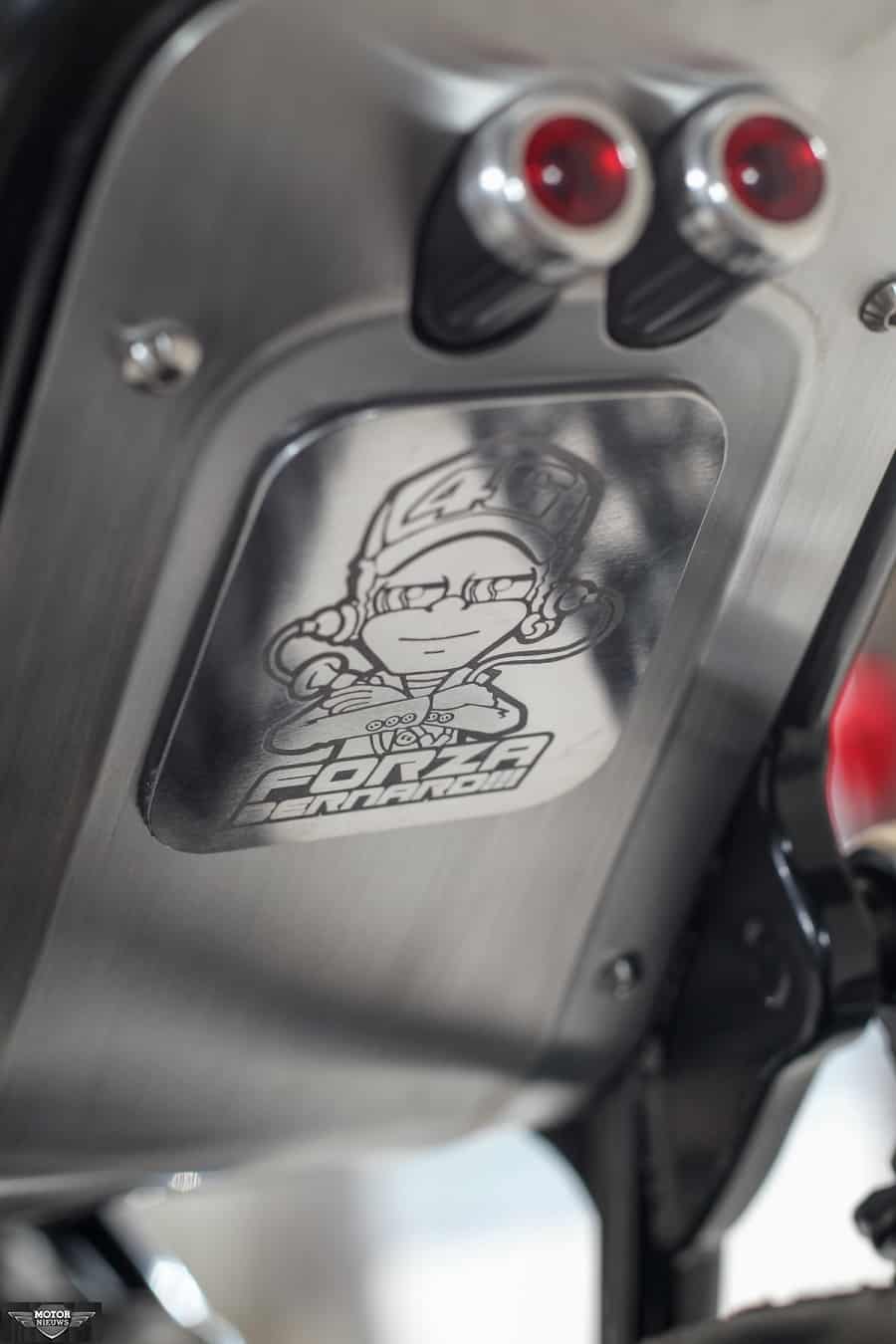 Yamaha a fait réaliser une splendide machine par Fred Krugger, ce dernier l’a dédiant à Bernard Ansiau, fidèle mécanicien de Valentino Rossi.