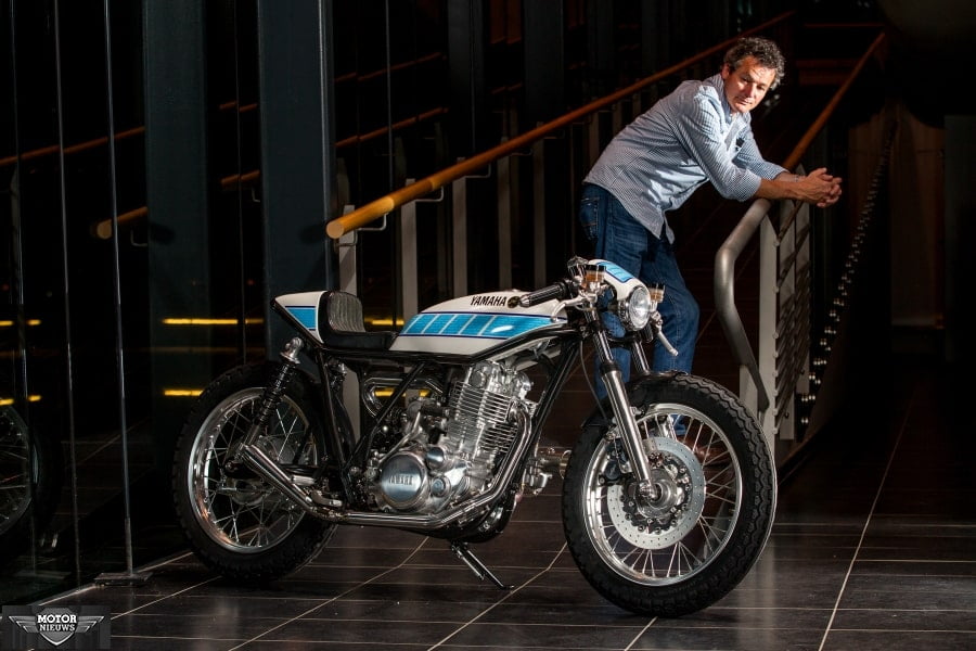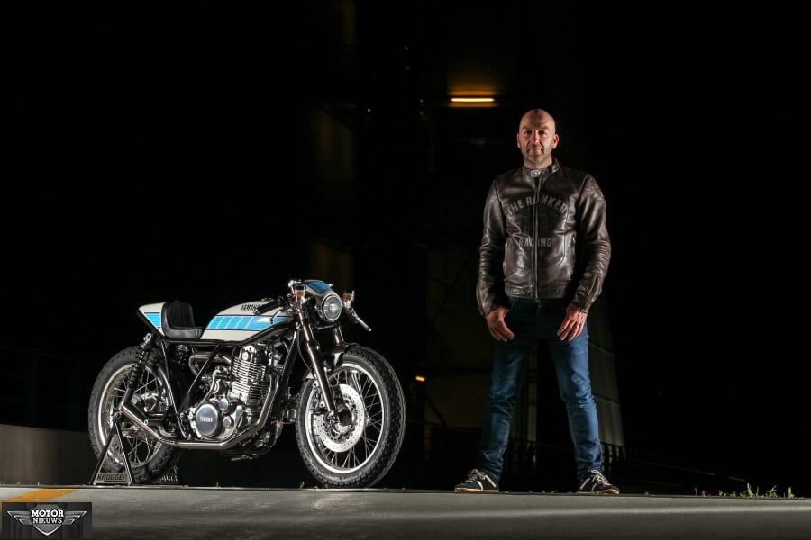 « J’ai choisi de partir sur un petit « SR 400″. Une machine légère dotée un monocylindre et de revenir aux bases de la moto. J’aime faire des projets avec un fil d’Ariane. Cette fois, j’ai décidé de dédier cette machine à Bernard Ansiau dont j’admire le travail. J’ai pas mal travaillé en sport mécanique, et les travailleurs de l’ombre sont partie intégrante de la victoire d’un pilote. Ils sont rarement cités, j’y contribue ici à ma manière »