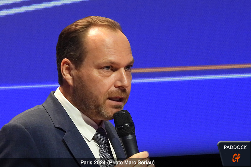 Quelques chiffres clés. Je ne voudrais pas à redire ce qui a été dit en conférence de presse avec Nicolas mi-décembre, mais peut-être rappeler ce chiffre de 3 milliards de chiffre d’affaires sur l’ensemble de la filière des sports mécaniques, donc nos 1900 compétitions. 3 millions de spectateurs également, c’est-à-dire que entre l’auto et la moto, il y a 3 millions de personnes, 3 millions de Français, qui se sont déplacés pour assister à une compétition de moto ou d’auto. Et puis le 3e point, entre guillemets, c’est le fait que nous sommes la 3e filière économique sportive en France. On présente quand même quelque chose, et évidemment une filière qui n’est pas délocalisable, avec des belles entreprises françaises, et certaines évidemment sont représentées ici. Donc voilà, une bonne fierté.