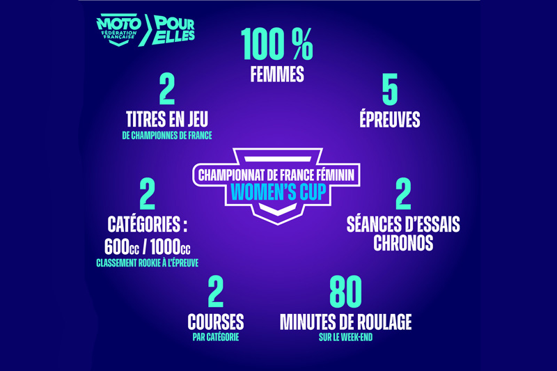 La Women’s Cup, Championnat de France 100% dédié aux féminines, repart pour une neuvième saison avec un calendrier de cinq épreuves programmées à travers la France. L’occasion de permettre à toutes les femmes, débutantes ou confirmées, d’assouvir leur passion en compétition sur asphalte.
