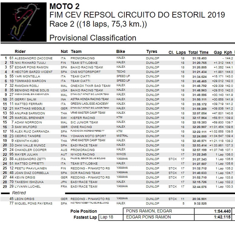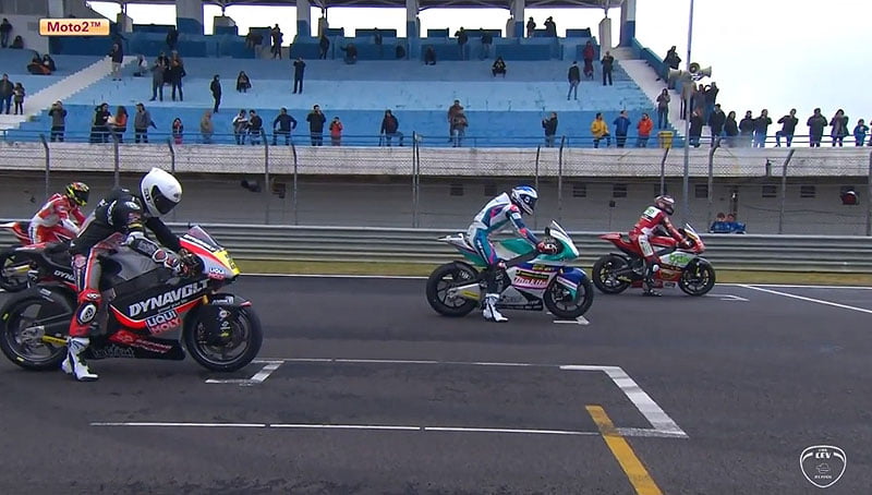 Ce dernier ne l’entend évidemment pas de cette oreille et parvient à stabiliser son avance, du moins jusqu’à ce que Hector Garzo Vicent (Tech3, CNS Motorpsort) prenne la direction de la contre-attaque et fasse la jonction avec Niki Tuuli à 13 tours du drapeau à damier.