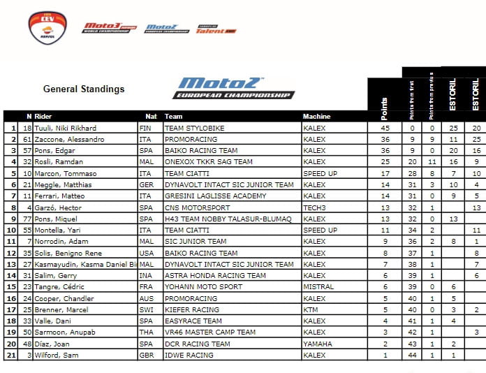 FIM CEV Moto2 : Alessandro Zaconne remporte la course, Nicky Tuuli mène le championnat…
