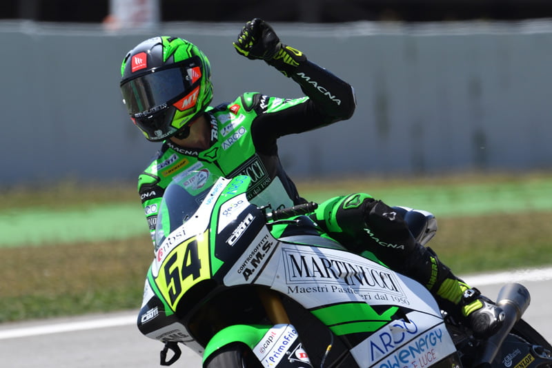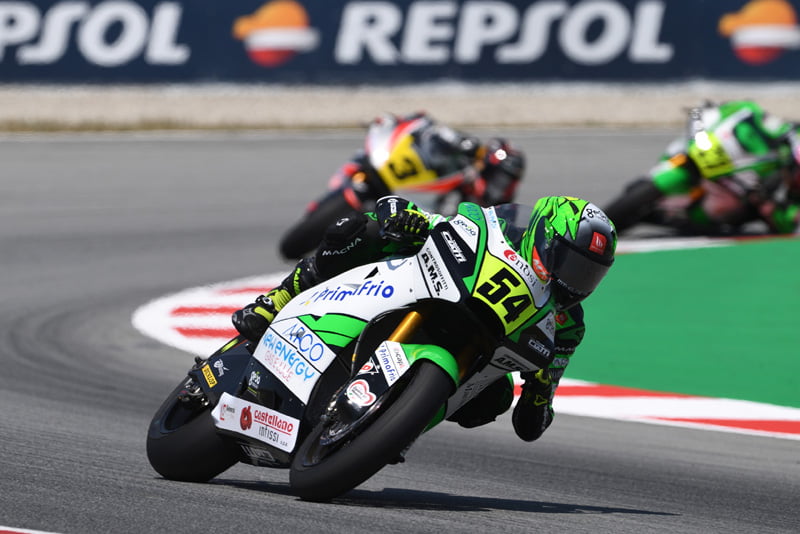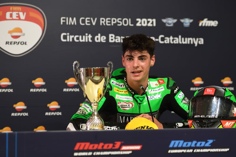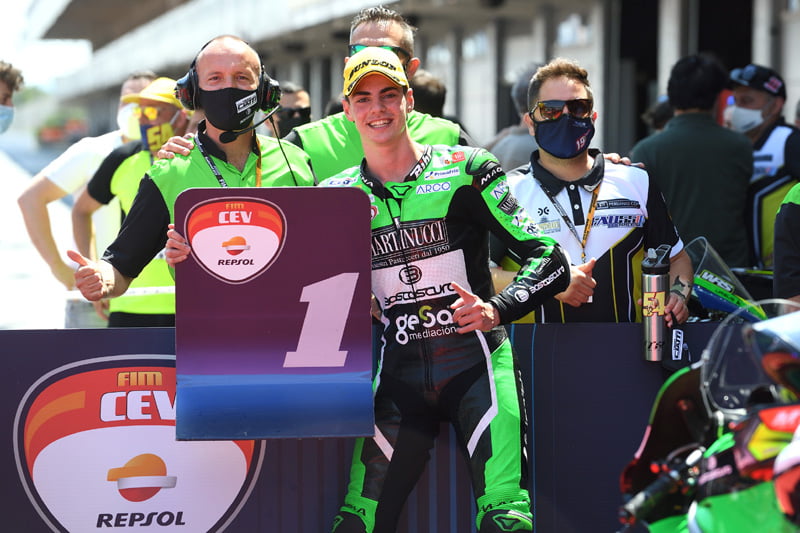 En attendant, le très jeune Espagnol au parcours déjà éclectique (European Talent Cup 2019, Superstock 600 FIM CEV en 2020, Moto2 FIM CEV et Mondial MotoE cette année) domine complètement le championnat d’Europe Moto2, sur les traces de son prédécesseur transalpin.