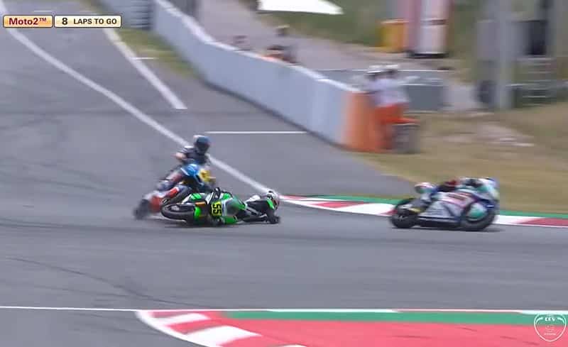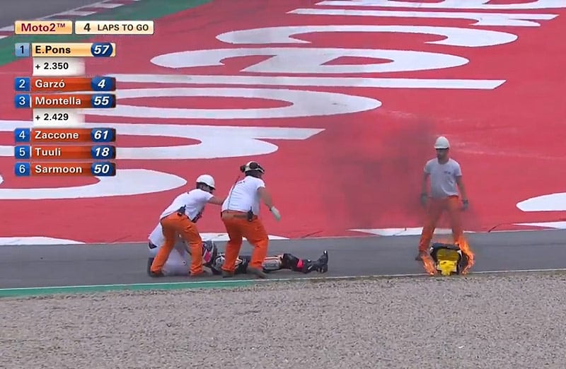 A 11 tours de l’arrivée, Hector Garzó a doublé Niki Tuuli, mais trois tours plus tard, Yari Montella chutait lors d’un freinage, entraînant Héctor Garzó à terre avec lui.