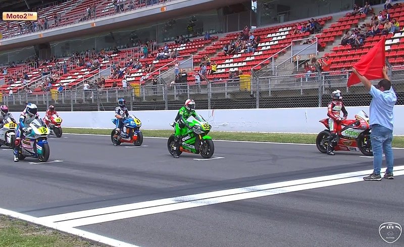 Les 2 hommes créent immédiatement un petit écart sur le peloton d’abord emmené par Niki Tuuli (Kalex, Team Stylobike) puis Yari Montella (Speed Up, Team Ciatti) mais après 2 tours, le drapeau rouge est agité suite à l’huile de la moto de Leon Orgis (Yamaha, Pinamoto RS) imbibant la piste après une chute.