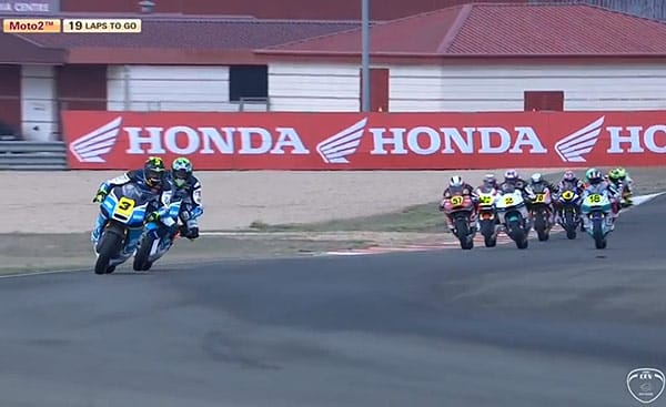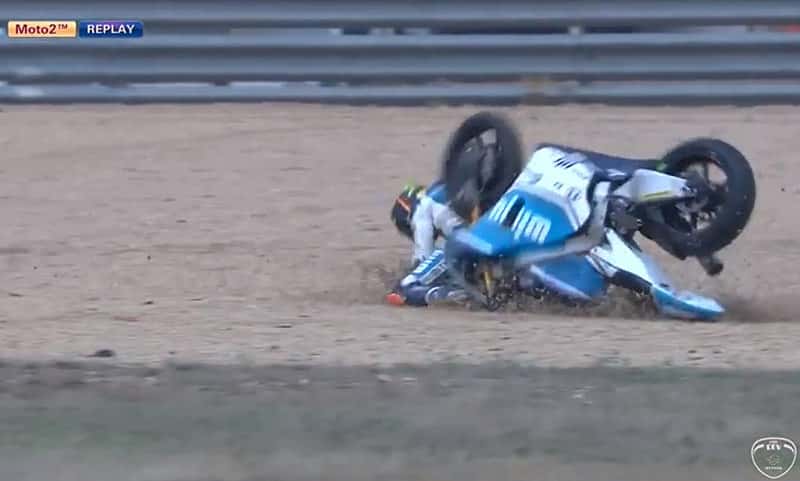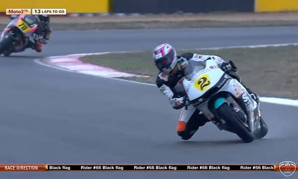 Ce dernier reprend la tête et, en essayant de le suivre, Lucas Tulovic subi un highside qui annihile toutes ses chances.