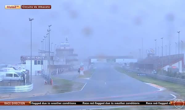 Il pleut aussi parfois en Espagne, et c’est le cas actuellement dans le centre, ce qui a entraîné le retard des départs des course de ce week-end à Albacete, à commencer par celle des Moto2 qui ouvrait la journée.
