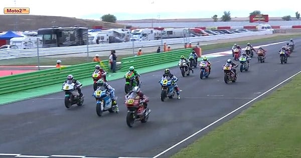 Cette fois, c’est le poleman Edgar Pons (Kalex, AGR Team) qui s’élance le mieux devant les deux Tech3 d’Hector Garzo et Lucas Tulovic suivi de Jesko Raffin (Kalex, Swiss Innovative Investors Junior).
