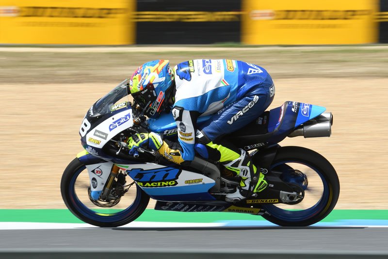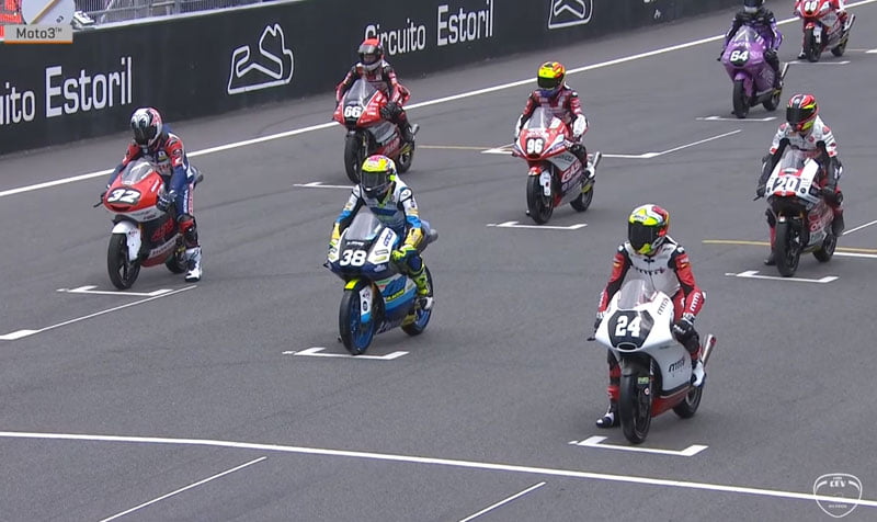 Immédiatement des ennuis : la moto de Sho Nishimura (MT-Foundation 77) tombe en panne sur la grille avant le tour de reconnaissance, sa course est immédiatement compliquée. Daniel Holgado s’élance très bien au départ, suivi par David Salvador et Takuma Matsuyama (Asia Talent Team), tandis que le poleman Ivan Ortolá (Team MTA) perd quelques positions. Problèmes aussi dans ce départ, Volpi est arrêté et est poussé vers la voie des stands : à la fin il réussit à partir de la voie des stands, mais avec un énorme écart… En tête Daniel Holgado (GasGas) et David Salvador (TM) essaient immédiatement de prendre la tête, tandis que Raffaele Fusco (TM Racing Factory Team) se retire sur chute. Il a été suivi par l’élimination définitive de Sho Nishimura, parti loin derrière mais qui a chuté après quelques tours, Clément Rougé (Laglisse Academy) et Joel Kelso (AGR Team) ont également abandonné peu après.