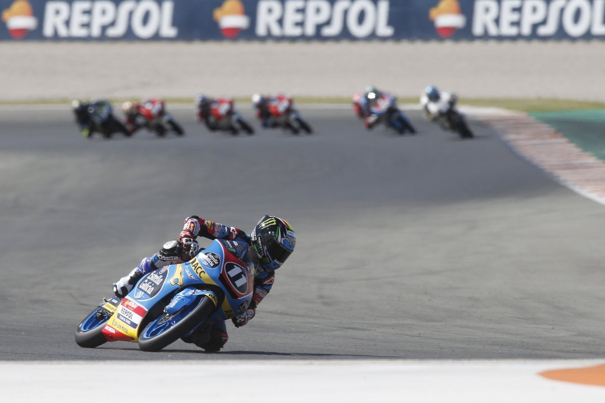 Raul Fernandez (KTM, Angel Nieto Team) parvenait à y suivre le duo constitué de Aleix Viu (Honda, Marinelli Sniper) et Celestino Vietti (KTM, SKY VR46) alors que le peloton était emmené par Jeremy Alcoba (Honda, Estrella Galicia 0,0), Yuki Kunii (Honda, Asia Talent Team) et Manuel Pagliani (Honda, Leopard Racing).