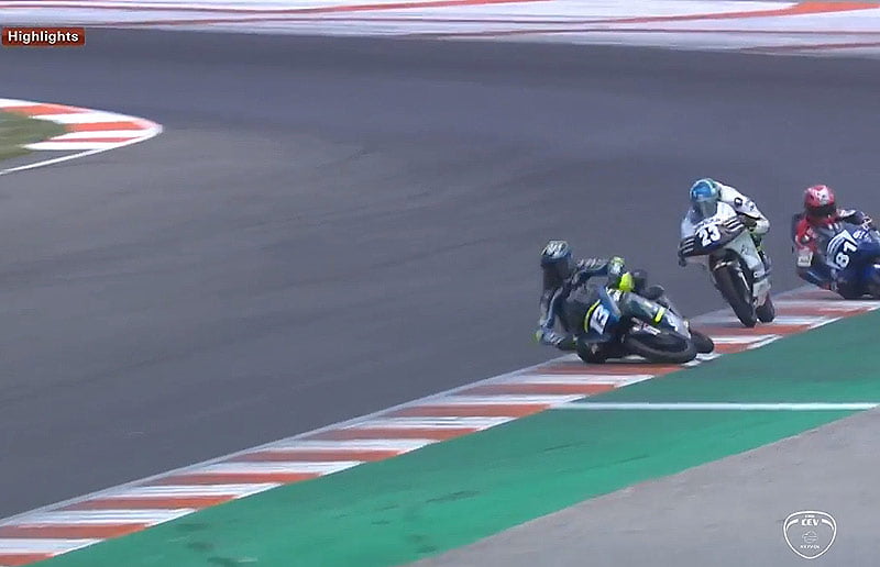 À 4 tours du drapeau à damier, Celestino Vietti et Aleix Viu perdaient l’avant de concert, exactement au même endroit mais sans qu’il y ait le moindre lien entre les 2 chutes.