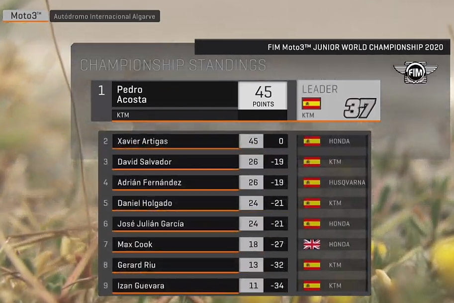 Classement au championnat: la domination espagnole est nette mais Pedro Acosta et Xavier Artigas, avec une victoire chacun, sortent pou le moment du lot…