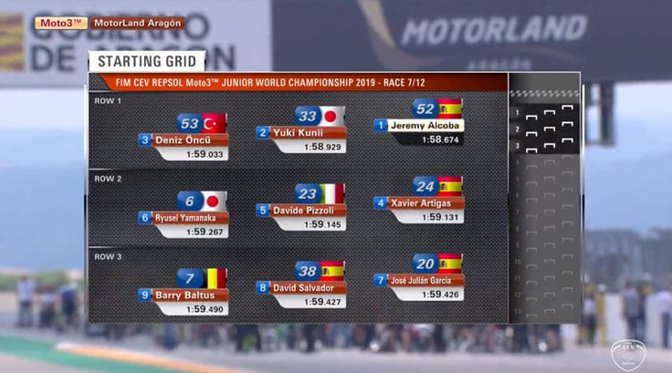C’est sous un ciel nuageux mais avec des températures correctes de 26° dans l’air et 32° au sol, que les pilotes de la catégorie CEV Moto3 s’élancent sur le circuit d’Aragón pour ce 5e rendez-vous du championnat.