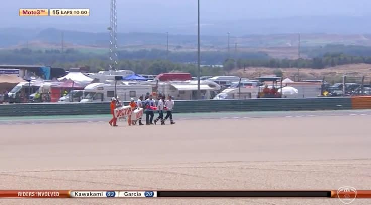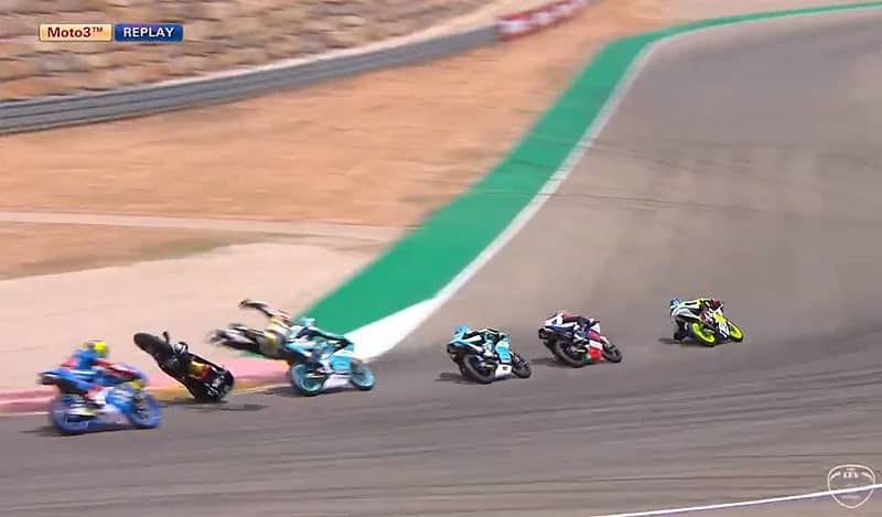 Quatre tours avant le drapeau à damiers, le groupe de tête se réduit à quatre pilotes suite à la chute de Aleix Viu Cotoli (KTM, Sama Global Angel Nieto Team). Celui-ci entraîne le Japonais Ryusei Yamanaka (Honda, Junior Team Estrella Galicia 0,0) qui élargit.