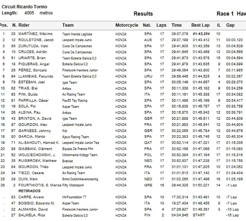 Malgré une course nerveuse dans laquelle Máximo Martínez a été pénalisé pour avoir dépassé les limites de la piste dans le dernier tour, la sixième place de ce dernier lui a permis de remporter le titre 2021.