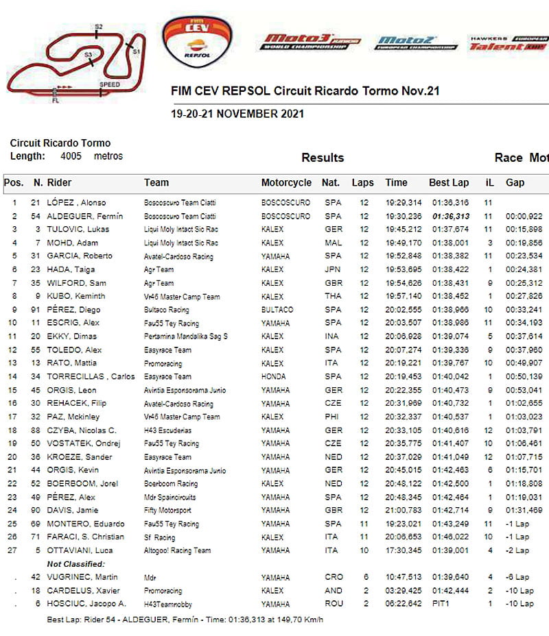Après ces dernières courses visibles ici, la saison 2021 du FIM CEV Repsol est maintenant terminée et le championnat reviendra en 2022 sous l’appellation FIM JuniorGP.