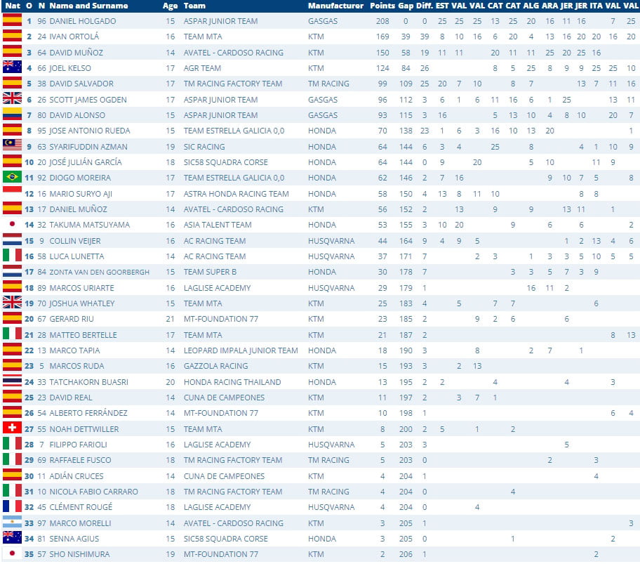Devant 10 000 fans au Circuit Ricardo Tormo, Daniel Holgado (GasGas, Aspar Team) et Máximo Martínez (Team Honda Laglisse) ont été couronnés Champions 2021 du Championnat du Monde FIM Moto3™ Junior et de la Hawkers European Talent Cup.