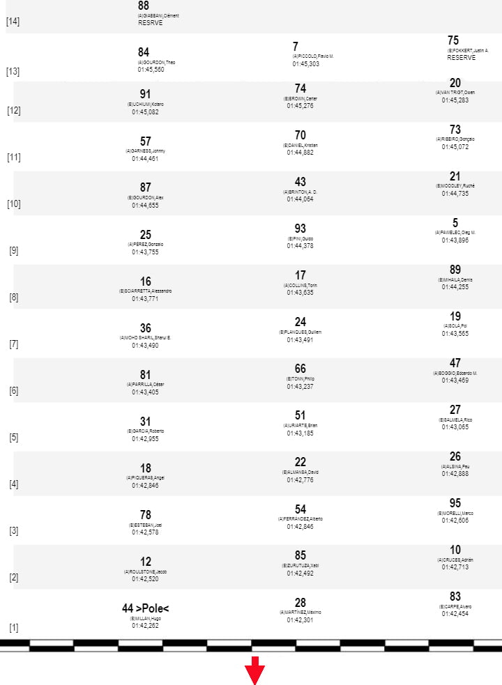On notera la 13e position du pilote français Andy Verdoïa () à 1,8 secondes, un chrono qui lui permet d’espérer s’immiscer dans le top 10.