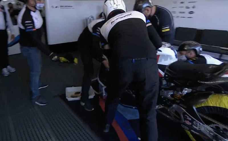 Dans un premier temps, la BMW est repartie en 19e position et a perdu 3 tours dans l’opération. Puis elle a refait un passage express en pit lane pour refixer quelque chose sur le train avant.