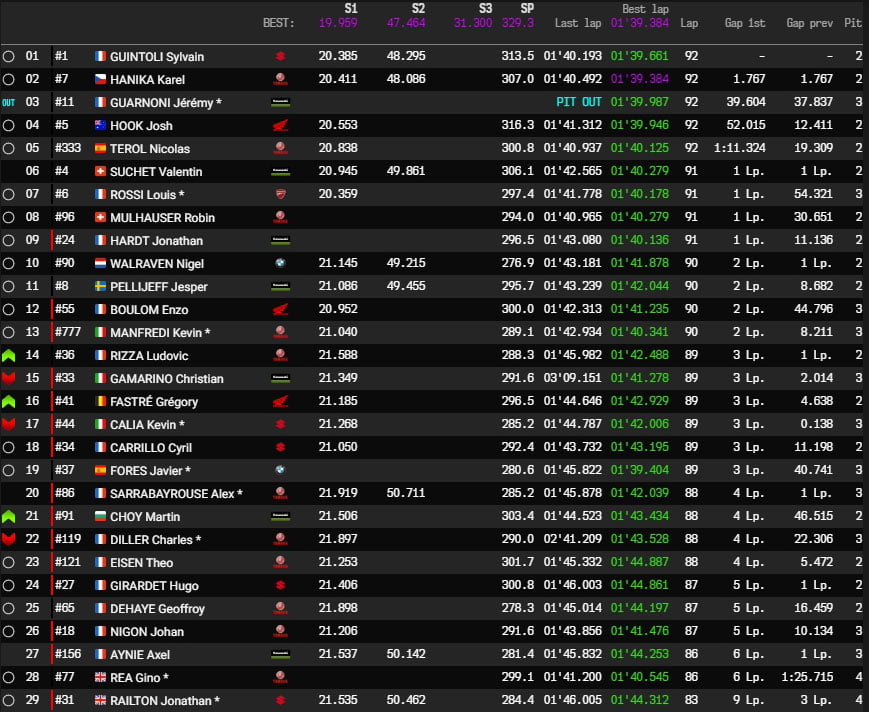 Du coup, c’est Sylvain Guintoli qui mène la course le guidon de la Suzuki #1, juste une seconde devant la Yamaha #7 emmenée par Karel Hanika…