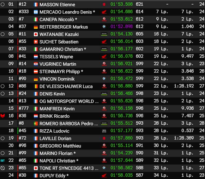 Classement du Bol d’Or FIM EWC 2023 à 11 h 40 :