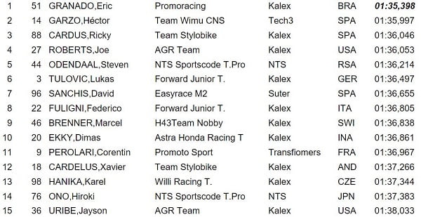 Résultats des qualifications du Championnat d’Europe Moto2 :