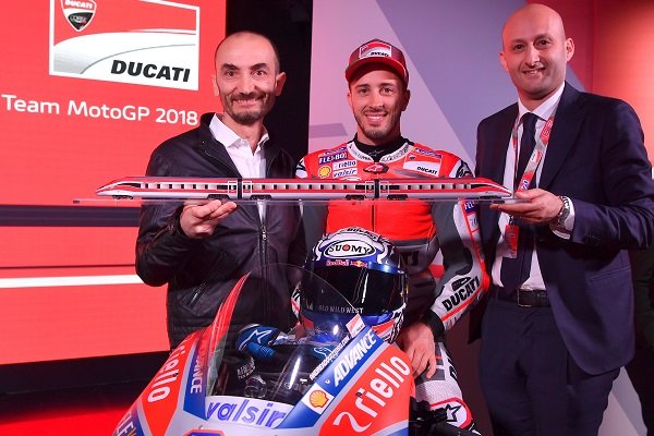 « L’accord avec Ducati, qui a choisi Frecciarossa comme le train officiel de l’équipe Ducati en MotoGP, nous remplit de fierté et confirme notre engagement dans le monde du sport, de la compétition et des meilleures énergies du Made in Italy », a déclaré Gianpiero Strisciuglio, Directeur de la division des passagers longue distance de Trenitalia. « La Frecciarossa de Trenitalia, leader de la fiabilité et de la qualité sur ses 1000 kilomètres de réseau à grande vitesse, a raccourci les distances, en changeant avec succès le style de vie et les habitudes touristiques des citoyens. »
