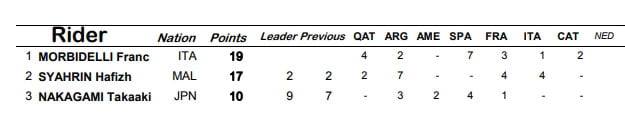 Il occupe actuellement la 16e place du championnat du monde, avec 19 points, mais surtout la 1e place de celui des Rookies, seulement 2 points devant Hafizh Syahrin.
