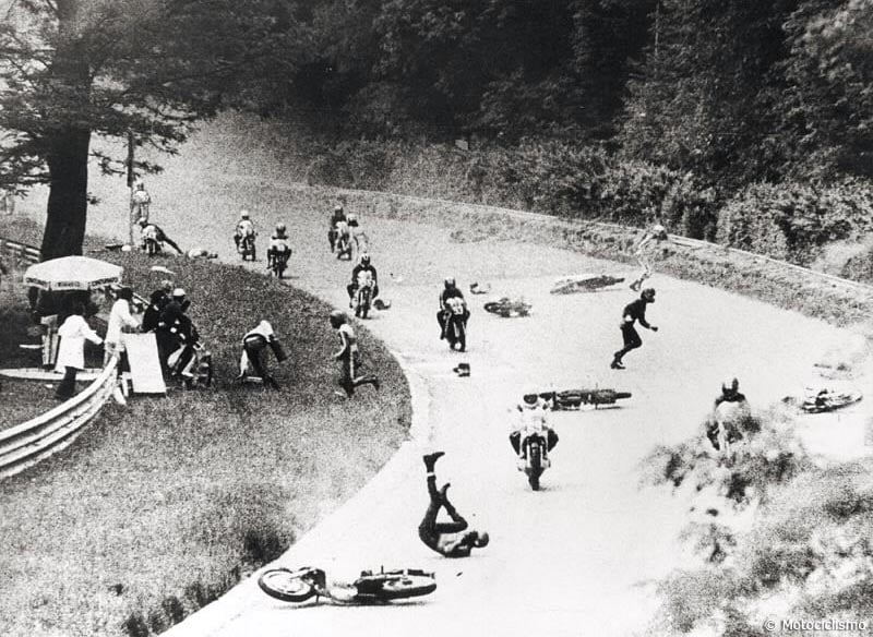 Dans des circonstances analogues, Jarno Saarinen et Renzo Pasolini, deux stars du Continental Circus, ont perdu la vie dans une chute collective impliquant pas moins d’une quinzaine de pilotes. Moyens de communication de l’époque obligent, le drame est resté sans réelle explication, mais il est probable que des traces d’huile déposées par la Benelli de Walter Villa lors de la course des 350 cc précédente en soit à l’origine, en dépit de la version officielle du serrage de la moto de Pasolini.