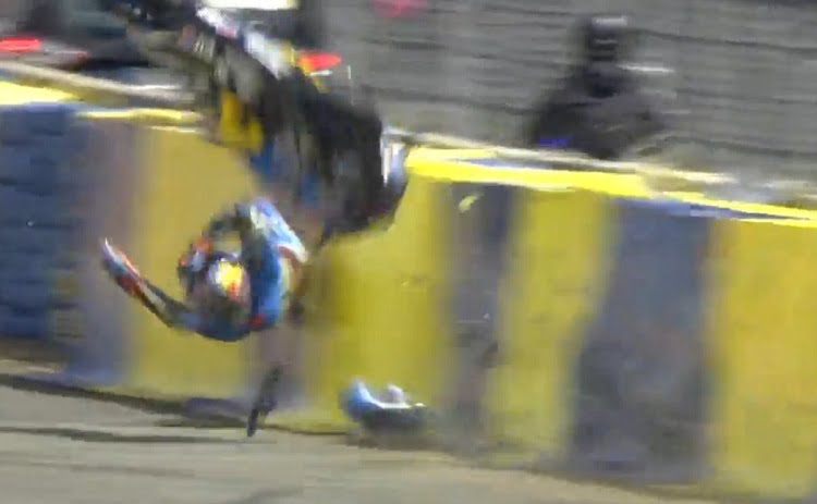 « Lorsque j’ai compris que j’allais inévitablement le percuter, j’ai lâché la moto. Je m’en sors avec une main douloureuse et un genou droit enflé comme un ballon de football ». Malgré tout, il a fait sa qualification, entreprise dès la Q.2, grâce à ses belles performances affichées depuis vendredi. Un exercice qu’il a conclu à la onzième place avec une nouvelle chute :