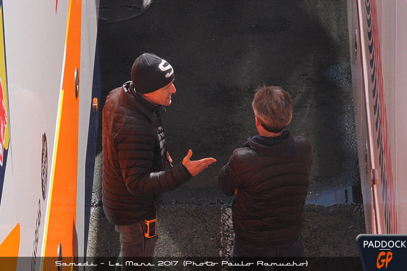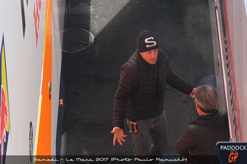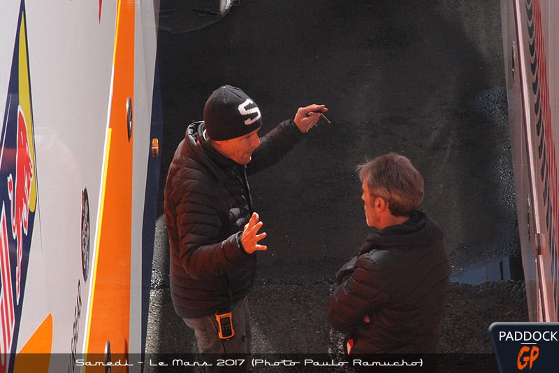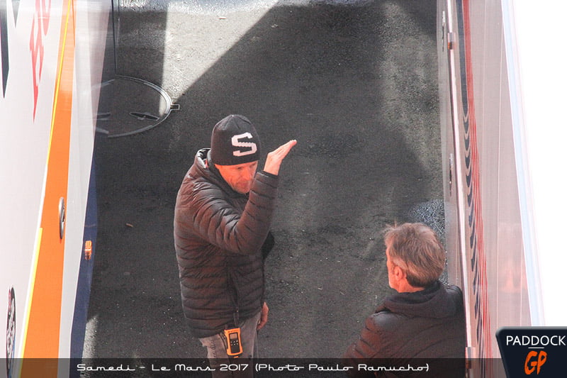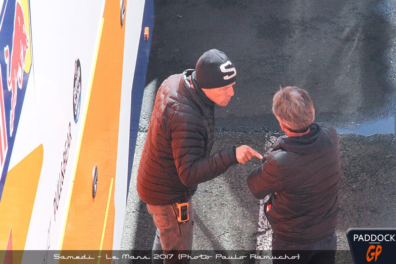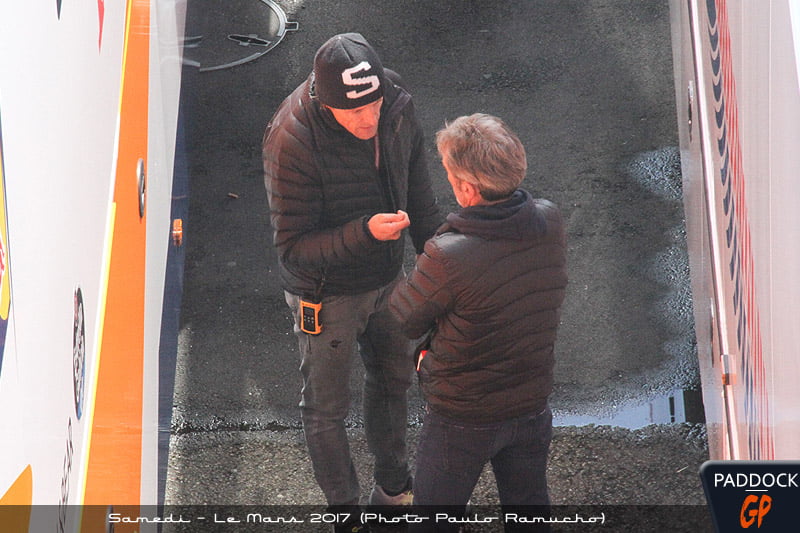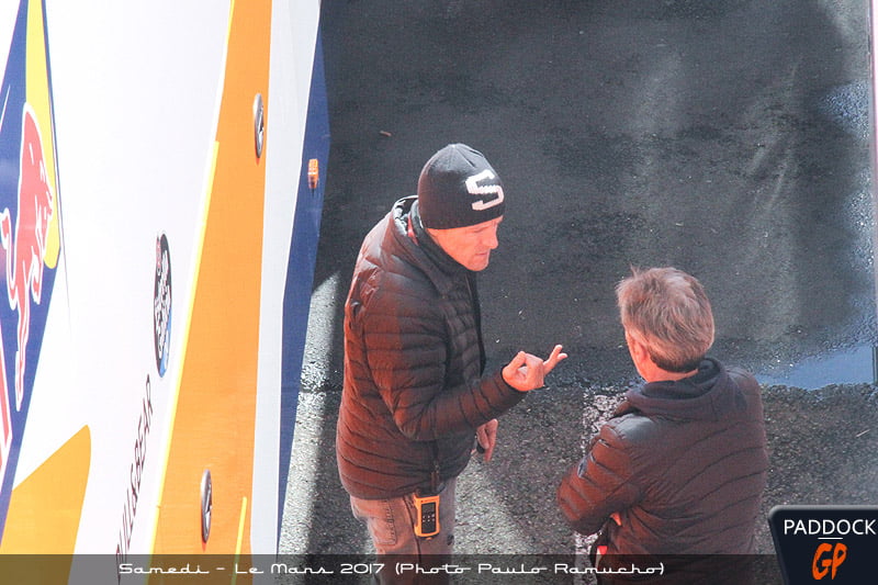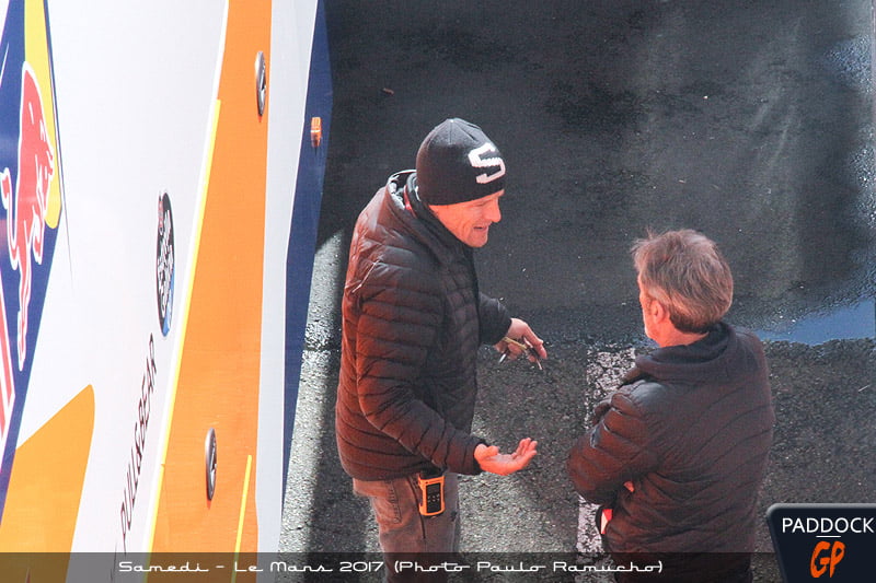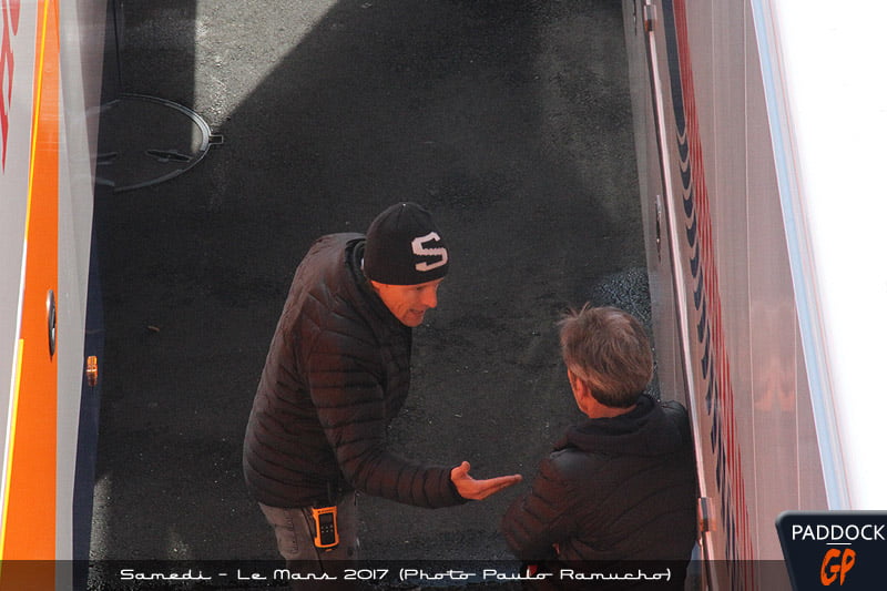 C’est pourquoi une bonne partie de la vie du paddock se passe ainsi, entre deux camions, loin des oreilles indiscrètes…