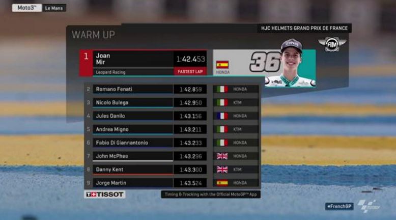 #FrenchGP Le Mans Moto3 Warm up : Record du circuit pour Mir, Danilo quatrième