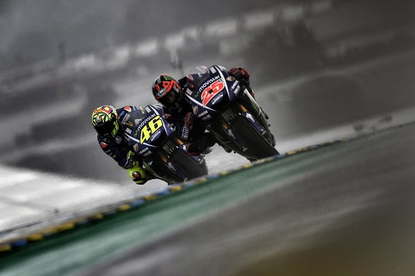 Le vendredi après-midi sous une pluie abondante, Vinales se classait en huitième position. Si Valentino Rossi utilisait le nouveau carénage « aéro » avec les ailerons en quelque sorte à l’intérieur, Maverick préférait utiliser le carénage classique.