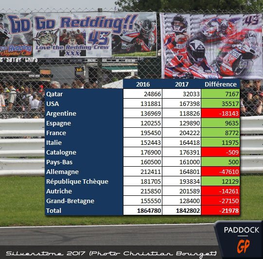 Globalement, la fréquentation des Grands Prix est relativement stable mais, avec la blessure de Valentino Rossi survenue hier, les chiffres pourraient connaître une courbe descendante, au moins jusqu’à son retour !