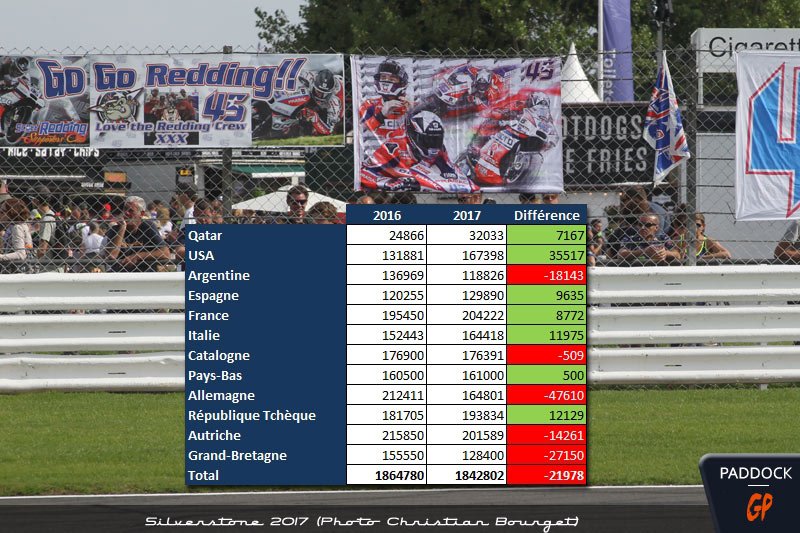 Globalement, la fréquentation des Grands Prix est relativement stable mais, avec la blessure de Valentino Rossi survenue hier, les chiffres pourraient connaître une courbe descendante, au moins jusqu’à son retour !