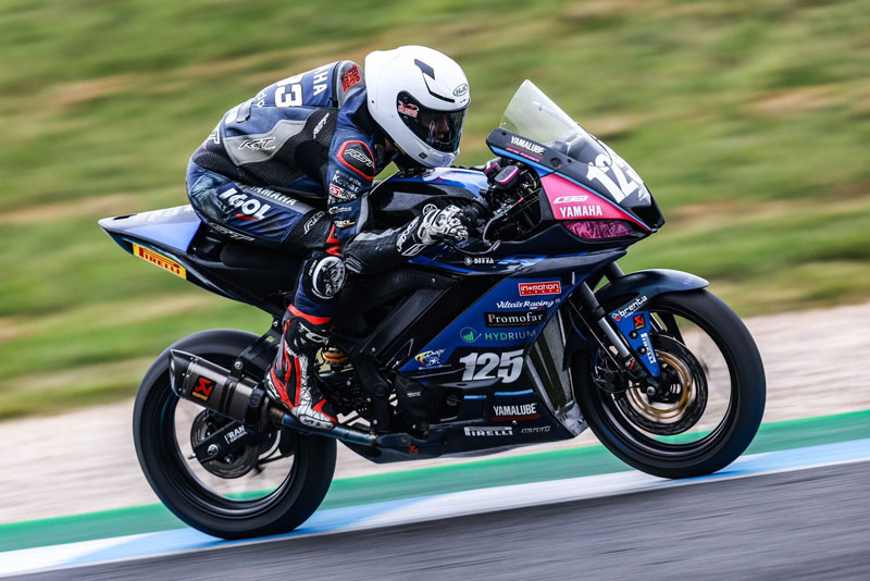 « Alors oui, Yamaha m’aide déjà grâce au championnat Yamaha qui est dans le championnat FBK. C’est un championnat où, par exemple pour moi l’année dernière, ça m’a permis de faire une wildcard dans championnat d’Europe. En fait, j’ai fait la wildcard à Magny-Cours, et après ils ont pris les 5 premiers pour représenter la France à Portimao, donc ça nous a permis de prendre beaucoup de niveau, parce que c’est le championnat européen. Et puis ça nous fait prendre de l’expérience de voir comment ça roule en Mondial tout ça. Et puis, ils nous aident pour quelques pièces. Il y a aussi eu le bLU cRU Camp, que j’ai fait en 2019 et en 2021, et c’est le maximum. En tout cas, Yamaha, ils sont vraiment là pour nous. »