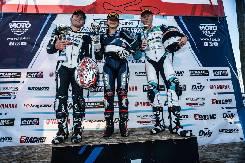 « Alors, ça a commencé de manière très compliquée avec Le Mans où je suis tombée aux 2 courses. Mais ensuite, à Nogaro, j’ai fait mon premier podium de l’année en terminant 2e, puis j’ai gagné à Lédenon, j’ai fini 2e et 3e à Magny-Cours, et à Pau-Arnos, j’ai encore gagné et j’ai fini 4e, et là, je viens de faire la pole donc on verra comment ça se passe dimanche. C’est ma première pole en FBK, ma 2e première ligne, mais ma première pole. »
