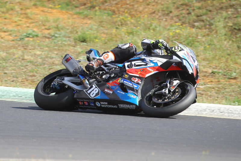 Alan TECHER (BMW Tecmas – Michelin) prend un bon envol et se donne de l’air dès le premier virage. Axel MAURIN (Yamaha – Michelin) jaillit de la 2e ligne et fait l’intérieur à Kenny FORAY (BMW Tecmas – Michelin) et Nicolas ESCUDIER (Yamaha Tech Solutions – Michelin) dans le premier enchainement.