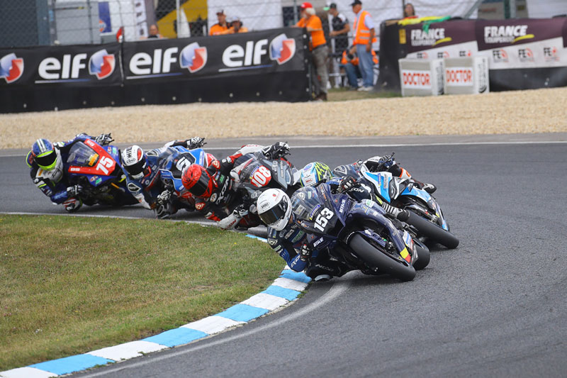 Après une étape de Pau Arnos extrêmement disputée et une Wild Card remportée par le leader du général Johan GIMBERT (Yamaha – Pirelli), les pilotes de Supersport 600 ont les yeux rivés vers la course au titre. Celle-ci oppose principalement Johan GIMBERT, 190 points, à Enzo DE LA VEGA (Yamaha – Pirelli), 166 points. Les deux garçons se sont livrés une lutte acharnée lors de la dernière manche ayant vu DE LA VEGA décrocher sa toute première victoire dans la catégorie. Désormais, DE LA VEGA semble en mesure de prétendre au titre, mais pourra-t-il refaire son retard de 24 points ? D’autant que le leader et son dauphin devront composer avec les ambitions de deux autres redoutables concurrents…