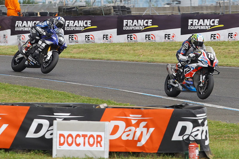 Alors que Mathieu GINES (Yamaha Tech Solutions – Michelin) résiste aux attaques des pilotes BMW Tecmas Kenny FORAY et Alan TECHER, Valentin DEBISE (Kawasaki Twist Ring Racing – Dunlop) est contraint de sortir de la piste pour éviter un accrochage au cœur du peloton et recule dans le classement.