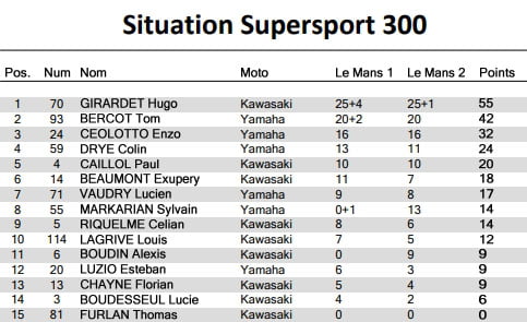 Véritablement supérieur au Mans, Hugo GIRARDET (Kawasaki) a fait valoir son titre de Vainqueur du Promosport 400. Tom BERCOT (Yamaha) et Enzo CEOLOTTO (Yamaha) ont fait, eux-aussi, parler d’eux lors de la 1ère manche du FSBK. Actuellement derrière le leader au classement, resteront-ils au contact ?