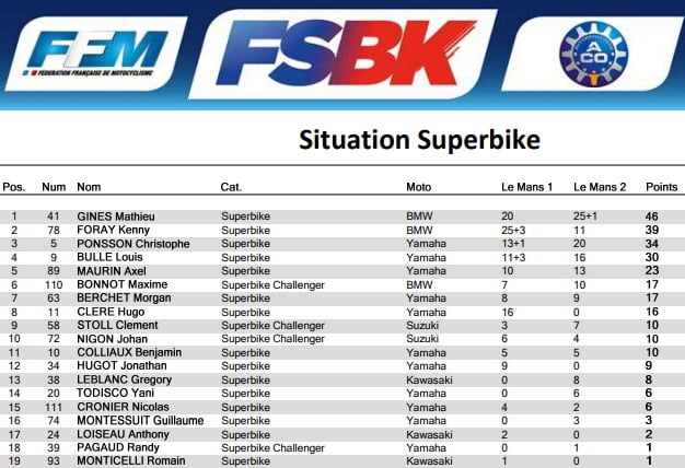 Avec deux places de dauphin au Mans, Mathieu GINES (BMW Tecmas) s’est installé en haut du classement provisoire. Une belle performance secondée par son co-équipier Kenny FORAY (BMW Tecmas), les deux pilotes BMW sauront faire valoir les couleurs de leur team à Nogaro !