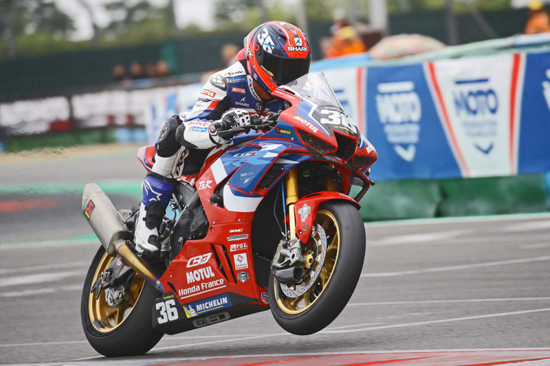 La grille de cette catégorie Superbike regorge de pilotes d’exception prêt à tout pour briller. À l’extinction des feux, c’est Mike DI MEGLIO (Honda CBO – Michelin) qui prend le meilleur départ et prend la première place au nez et à la barbe de Christophe PONSSON  (BMW – Michelin), second. La BMW de Jérémy GUARNONI (BMW MDS – Dunlop), est à l’attaque et occupe la 3ème place, la Yamaha de Mathieu GINES (Yamaha Supported Team 41 Performance – Michelin), est 4ème. Alan TECHER (Honda CBO – Michelin) vient compléter le top 5. Premier jeune, Corentin PEROLARI (Yamaha Moto Ain – Pirelli) réalise une belle entame de course, se place 6ème et doit manœuvrer avec le champion Kenny FORAY (BMW Tecmas – Michelin), 7ème, à ses trousses.