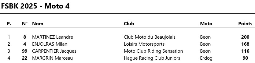 SITUATION AU CHAMPIONNAT MOTO 4 :
