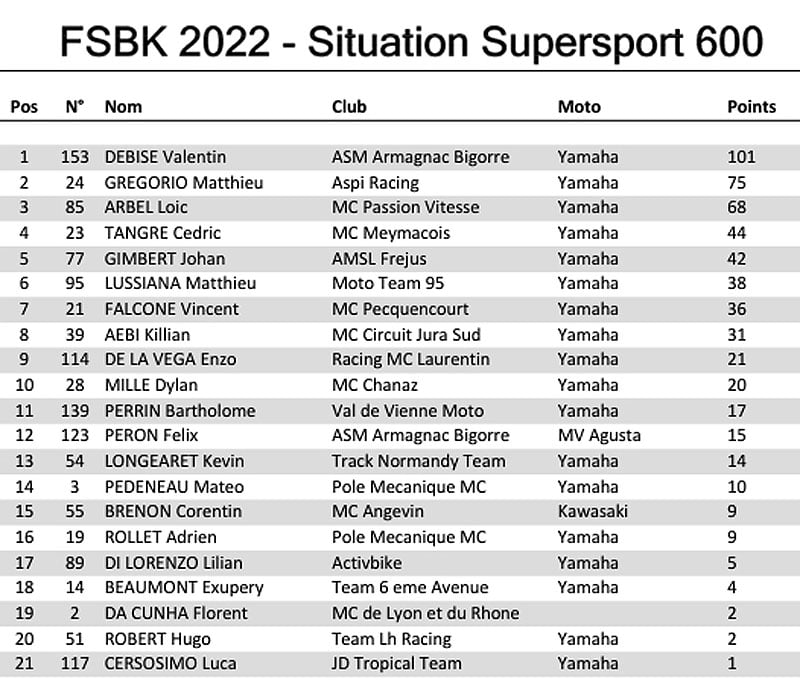 En fin de course, Valentin DEBISE est le seul pilote à rouler en 1’28, statistique lui permettant de prendre le large pour valider une 4ème victoire cette saison, consolidant ainsi son statut de leader du Championnat. Au dernier tour, FORAY hausse son niveau de jeu et surprend GINES en prenant l’avantage au freinage du premier virage du tracé. FORAY signe alors son meilleur résultat de 2022 devant son ancien coéquipier GINES, 3ème. Nouvelle 4ème place pour RENAUDIN qui conclut devant TECHER, 5ème. Un magnifique week-end pour le jeune sarthois qui devra encore patienter pour un premier podium en catégorie reine.