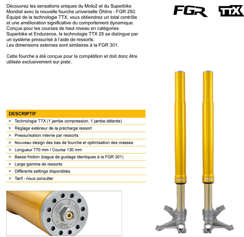 ÖHLINS et PFP France présentent la FGR 250, une fourche sœur de celles utilisées en Moto2.