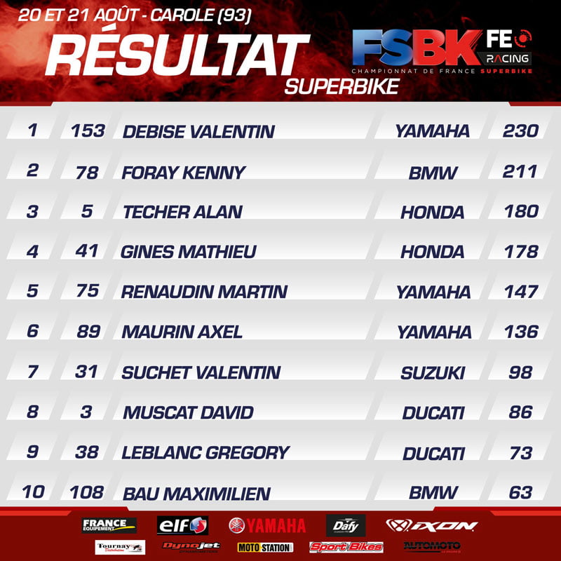 Le titre Supersport étant déjà attribué avant cette finale sur le circuit Paul Ricard, le principal intérêt du Championnat de France FSBK se porte sur la catégorie Superbike où Valentin Debise (Yamaha) et Kenny Foray (BMW), ainsi que mathématiquement Alan Techer (Honda), sont encore en lice pour la couronne nationale, alors que le champion de France en titre, Mathieu Gines (Yamaha), possède un retard de 52 points, soit le maximum attribuable en un weekend.